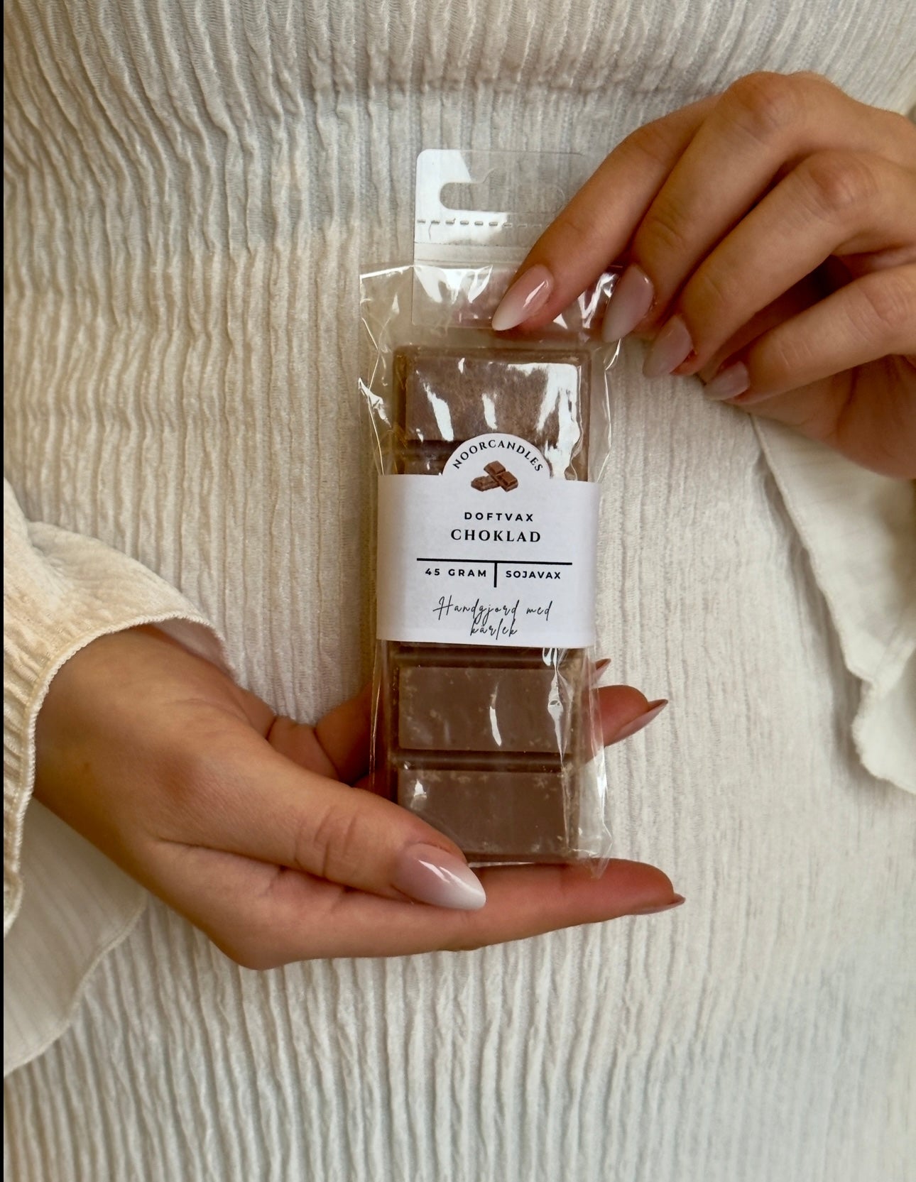 Vårt handgjorda doftvax är skapat för chokladälskaren som vill unna sig en stund av lyx i vardagen. När vaxet smälter frigörs en djup, söt och fyllig doft som påminner om nybruten choklad – perfekt för att skapa en mysig och inbjudande atmosfär.