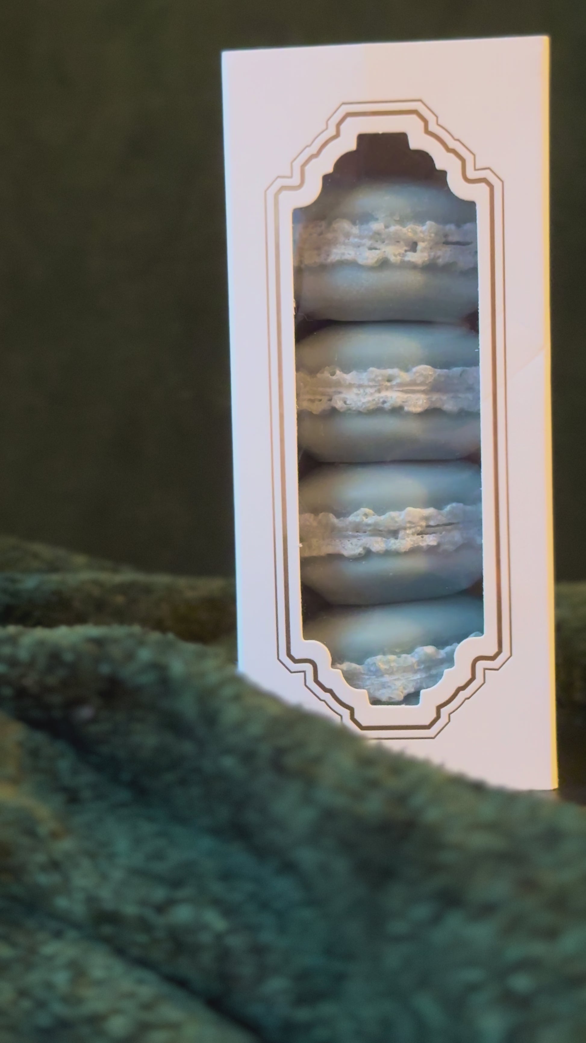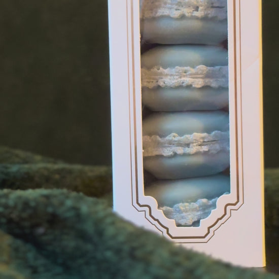 Doftvax i formen utav det franska bakverket macaron. Har en härlig doft utav blåbär och vanilj, och räcker länge för att ditt hem ska dofta helt ljuvligt.