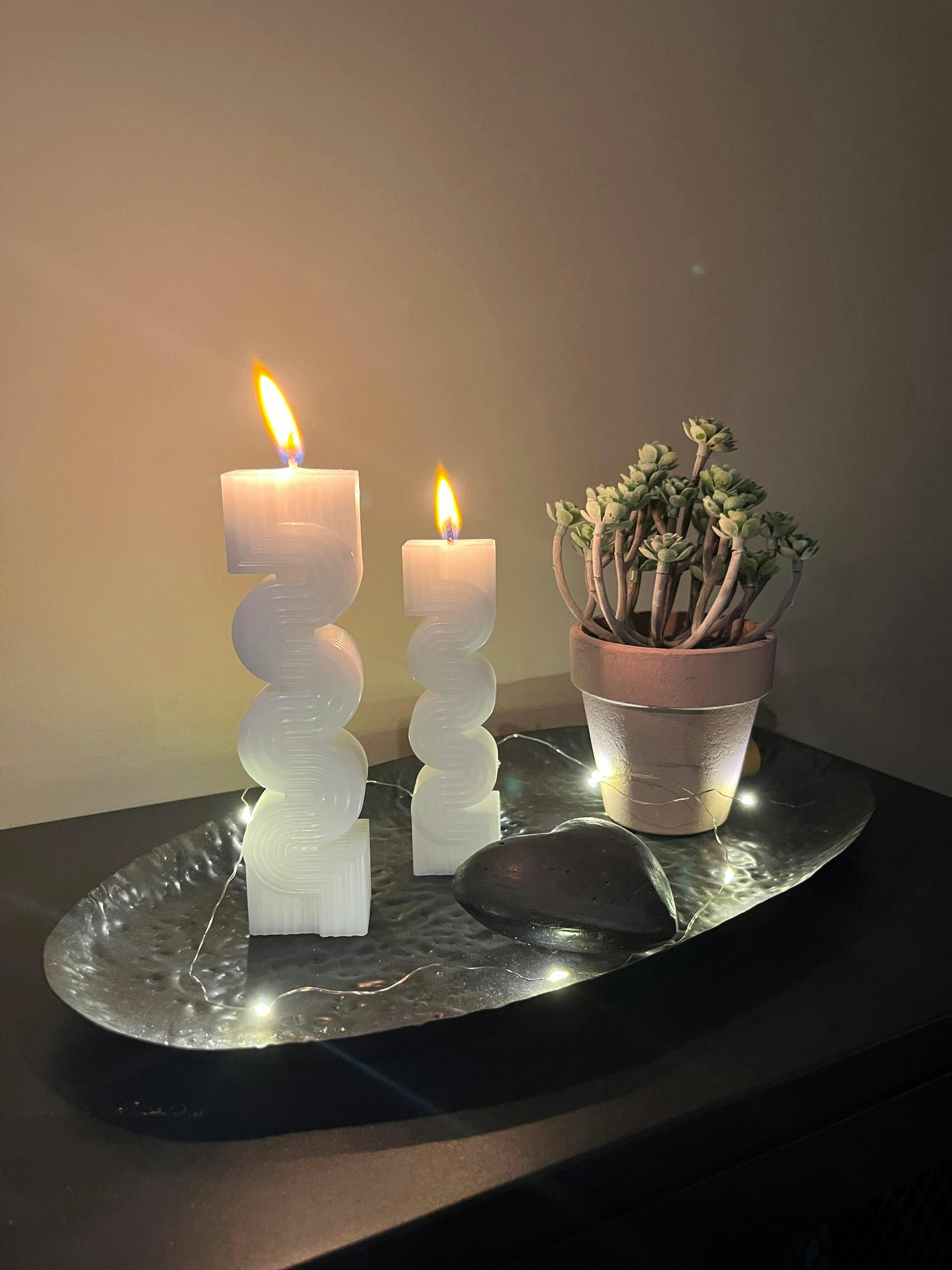 Echo är en serie handgjutna ljus som är designade för att vara mer än bara ljuskällor. De är skulpturer i miniatyr, framtagna för att skapa stämning, nyfikenhet och balans i hemmet.