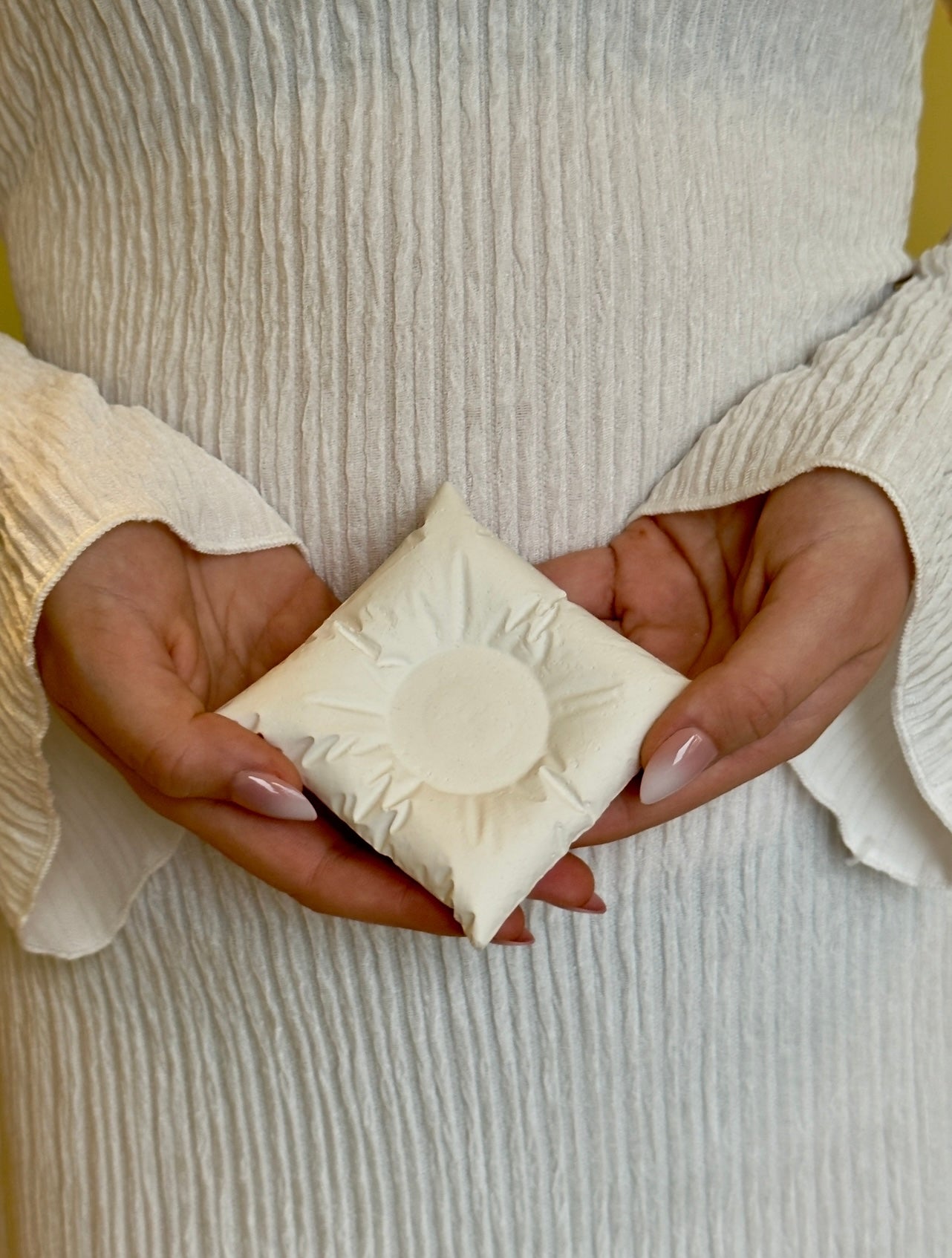 Ge ditt hem en känsla av ro och harmoni med Eldvila. Dessa unikt handgjutna ljushållare i formgips är formade som mjuka kuddar, där värmeljuset får vila som i en trygg famn. Den hårda ytan i gips möter den mjuka kuddeformen och det blir en vacker kontrast som för tankarna till både vila och värme.