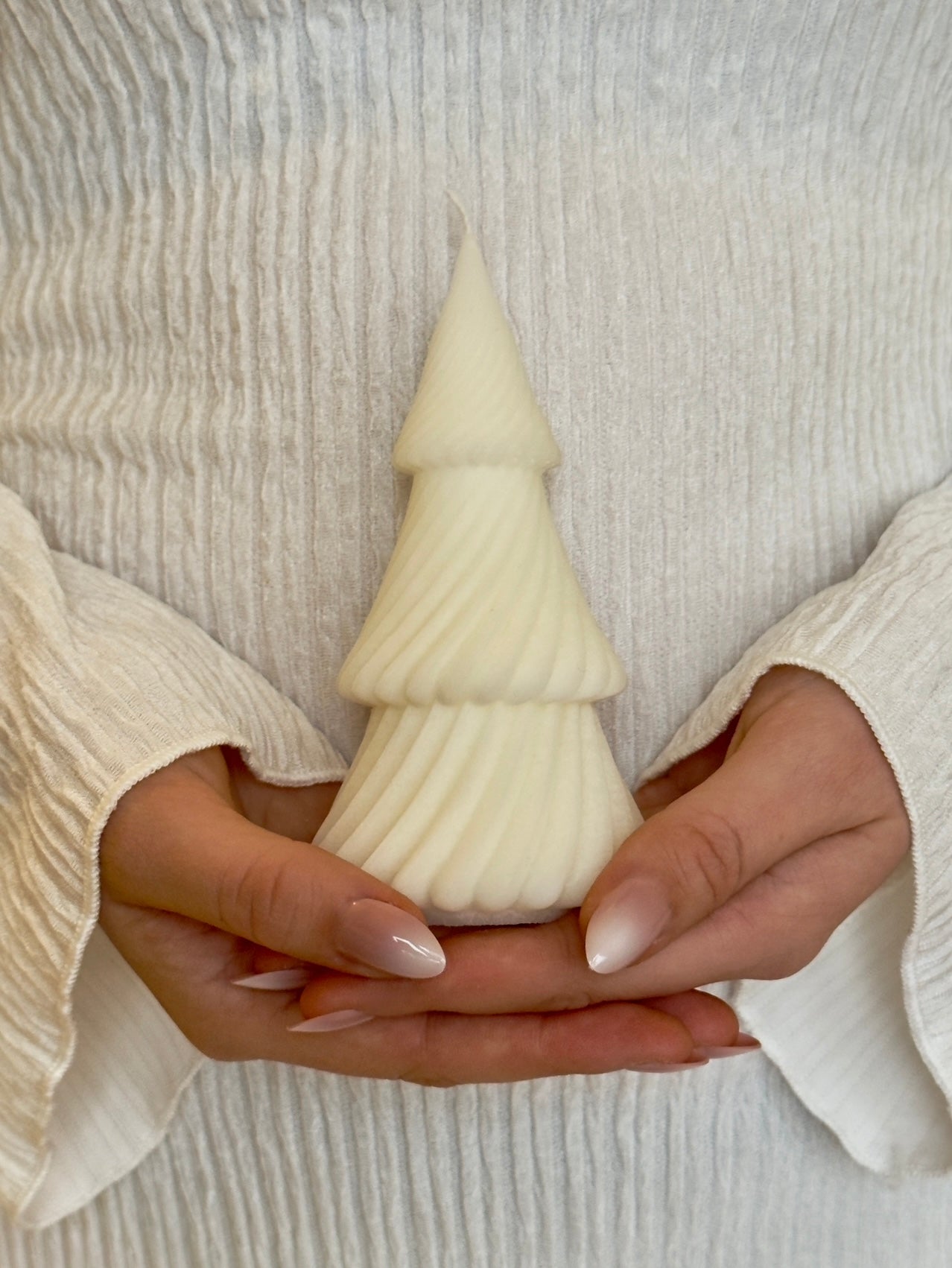 Låt vinterljuset dansa mellan granens grenar med Skogsflamma, ett handgjutet ljus format som en vacker julgran.