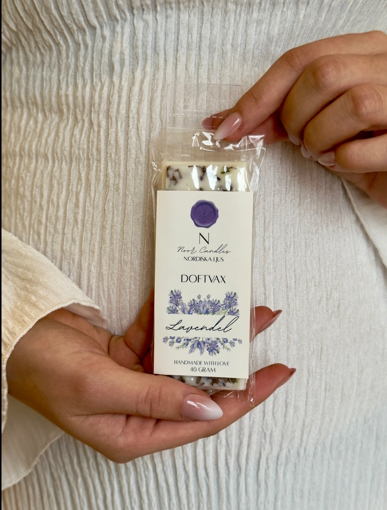 Låt hemmet fyllas av den tidlösa och rogivande doften av lavendel. Vårt handgjorda doftvax kombinerar den mjuka lavendeldoften med vackra torkade lavendelblommor som ger en naturlig och elegant touch.
