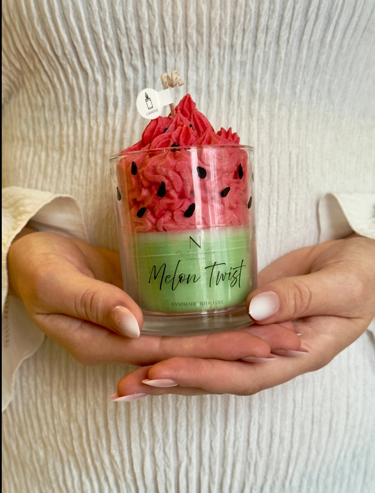 Låt ditt hem fyllas med den fräscha, saftiga doften av solmogna meloner! Våra handgjorda Melon Twist ljus är inte bara en källa till väldoft utan också en riktig ögonfångare i inredningen.