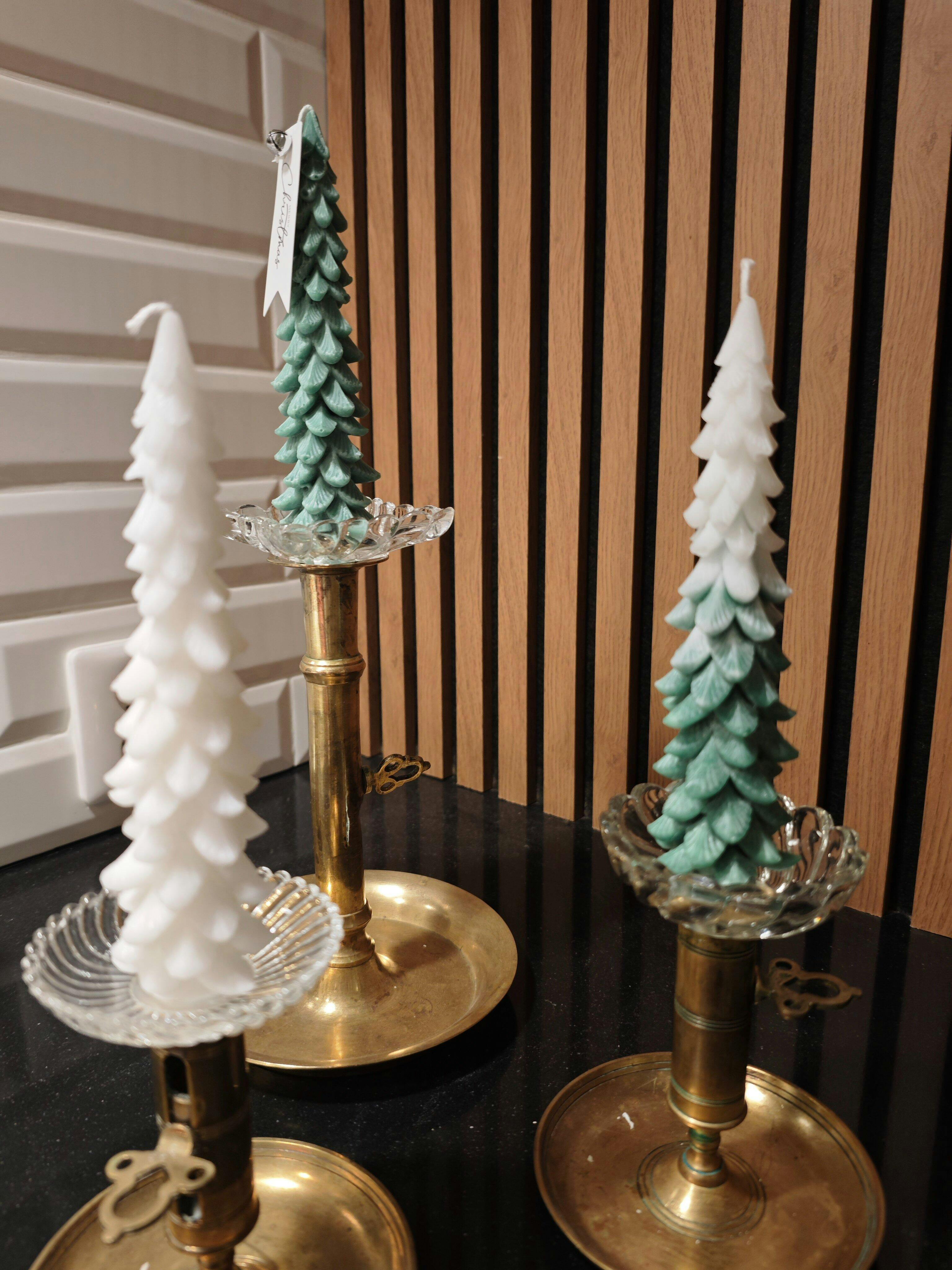 Detta handgjutna ljus är format som en gran, en symbol för vinterns lugn och naturens skönhet. Den rena, vita eller gröna färgen och de detaljerade grenarna fångar ljuset på ett mjukt, stämningsfullt sätt. Ibland kan små grenar brytas under processen, vilket bara tillför charm och gör varje ljus ännu mer personligt och perfekt för advent, jul och kalla vinterkvällar.