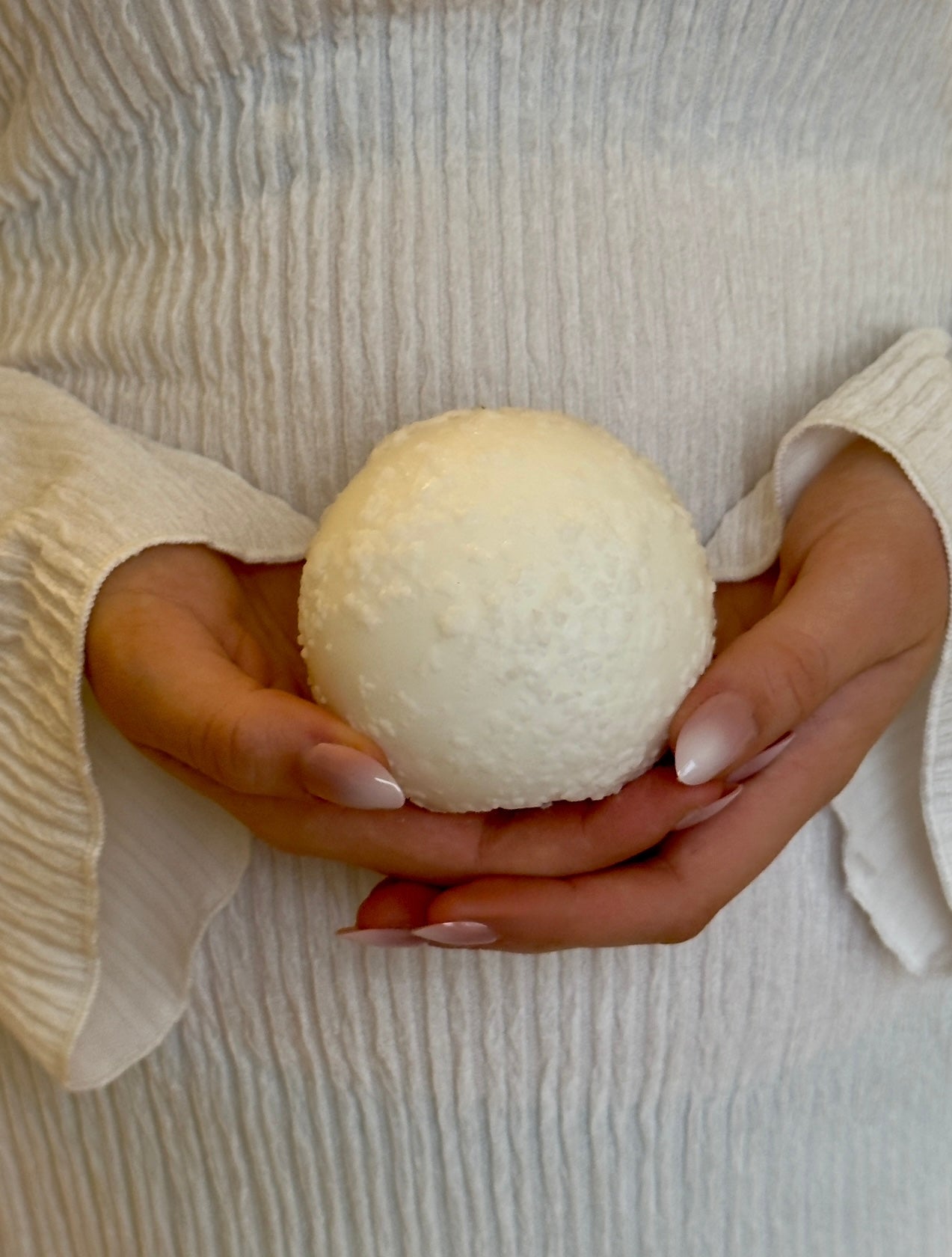 Låt vinterljuset flytta in med Snö, vårt handgjutna ljus format som en perfekt liten snöboll.