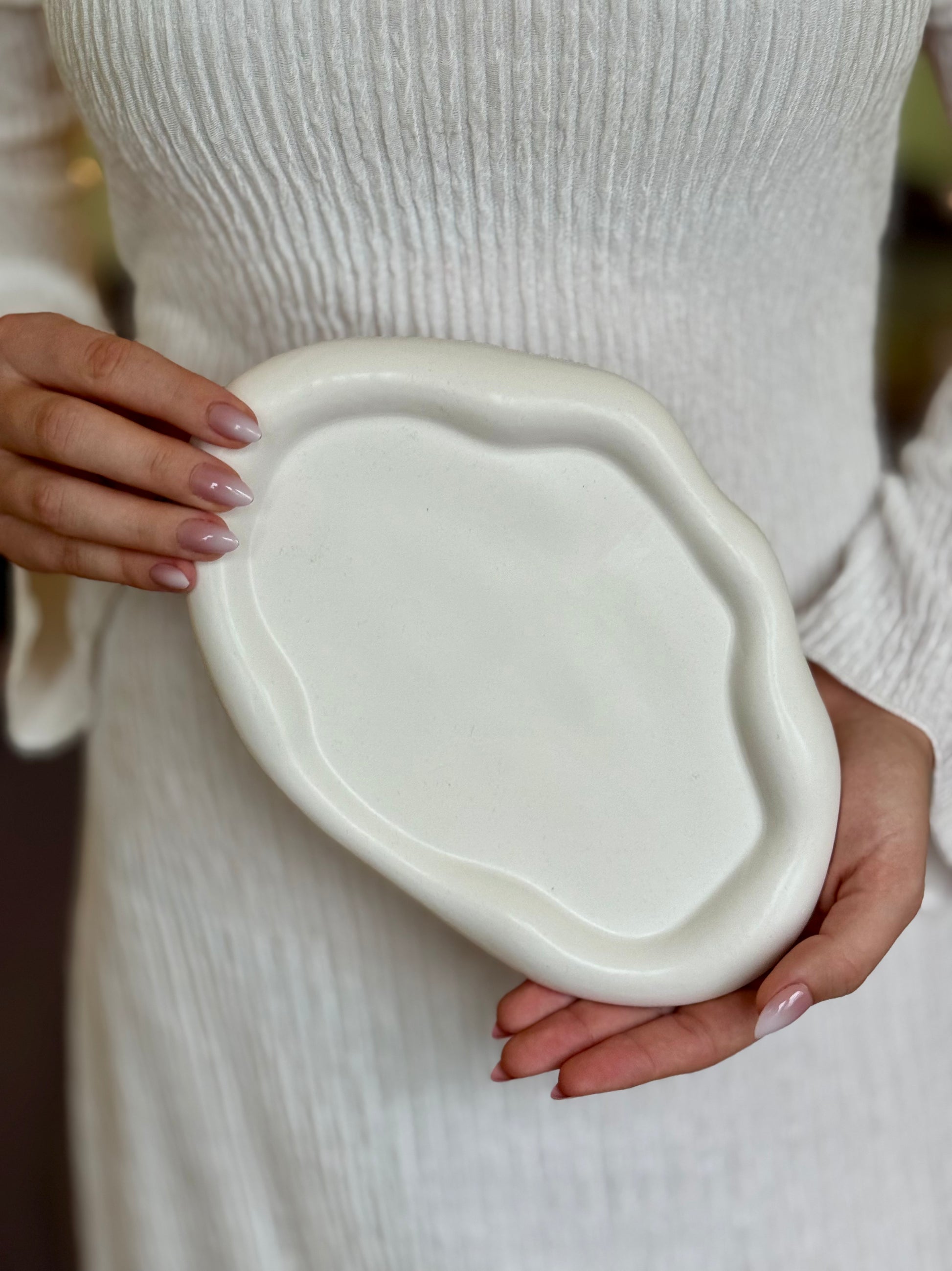 Låt formen tala med Våga, ett handgjutet fat med organiska linjer inspirerade av havets stilla vågor.